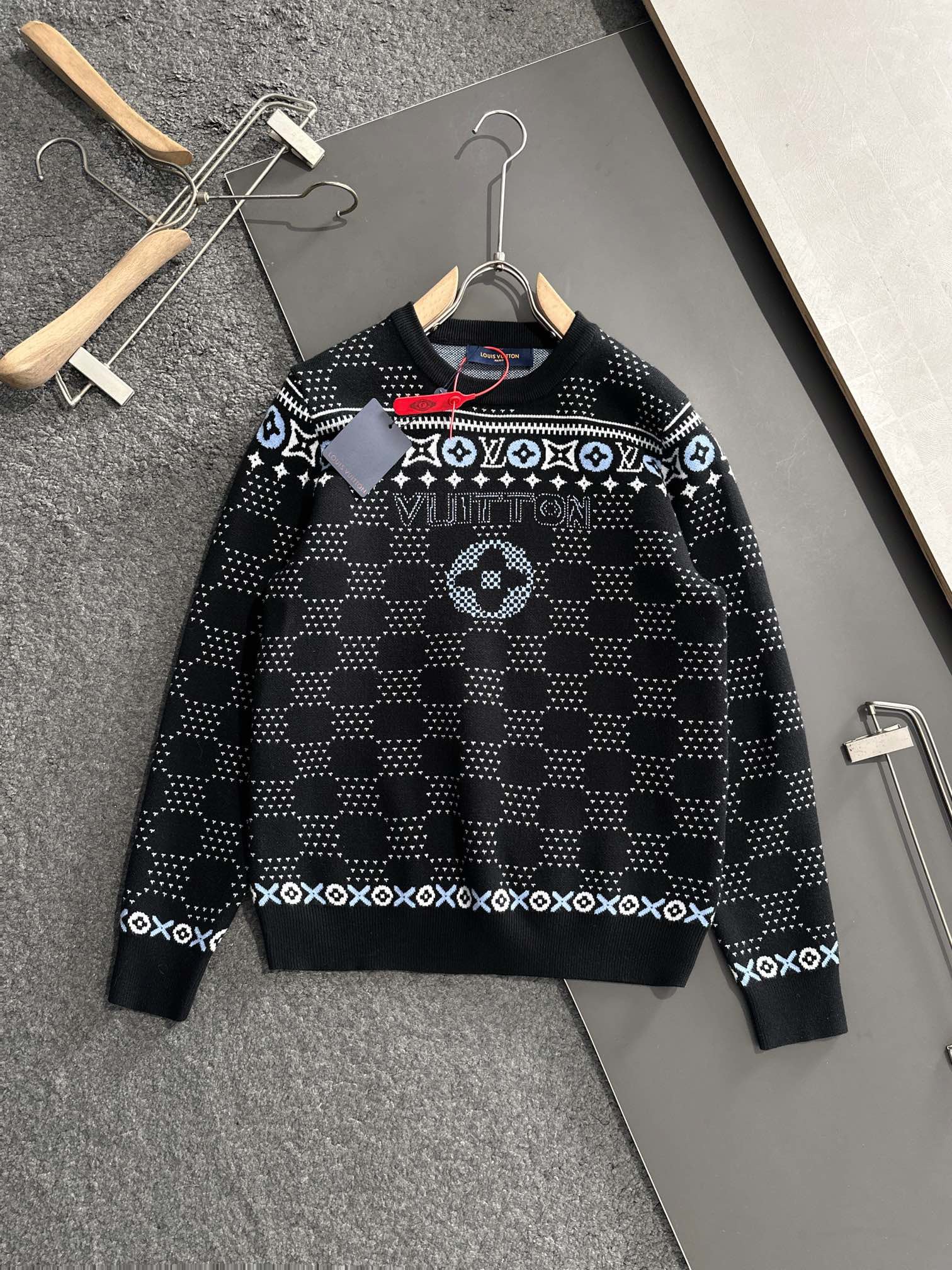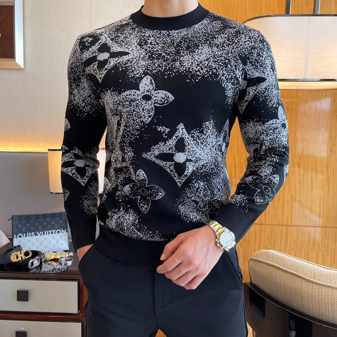 Jacquard crew neck knitted sweater