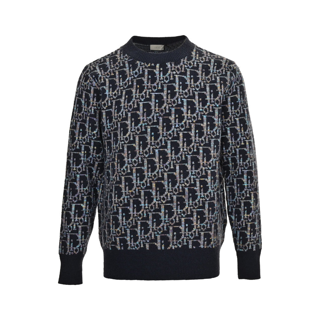 All-over monogram jacquard crew neck sweater