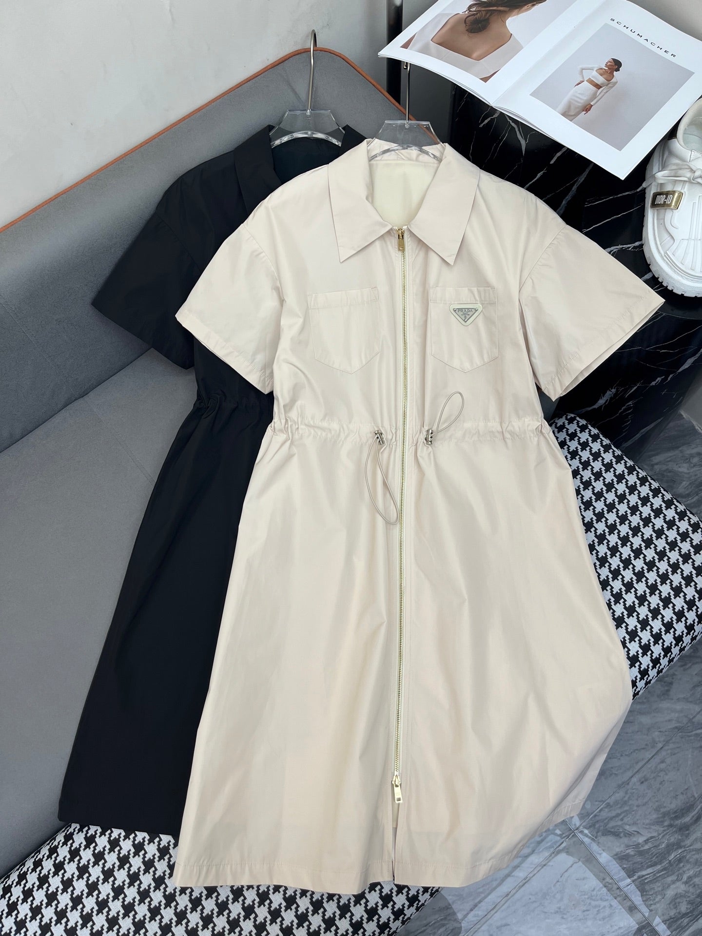 Workwear style with a small bag dress