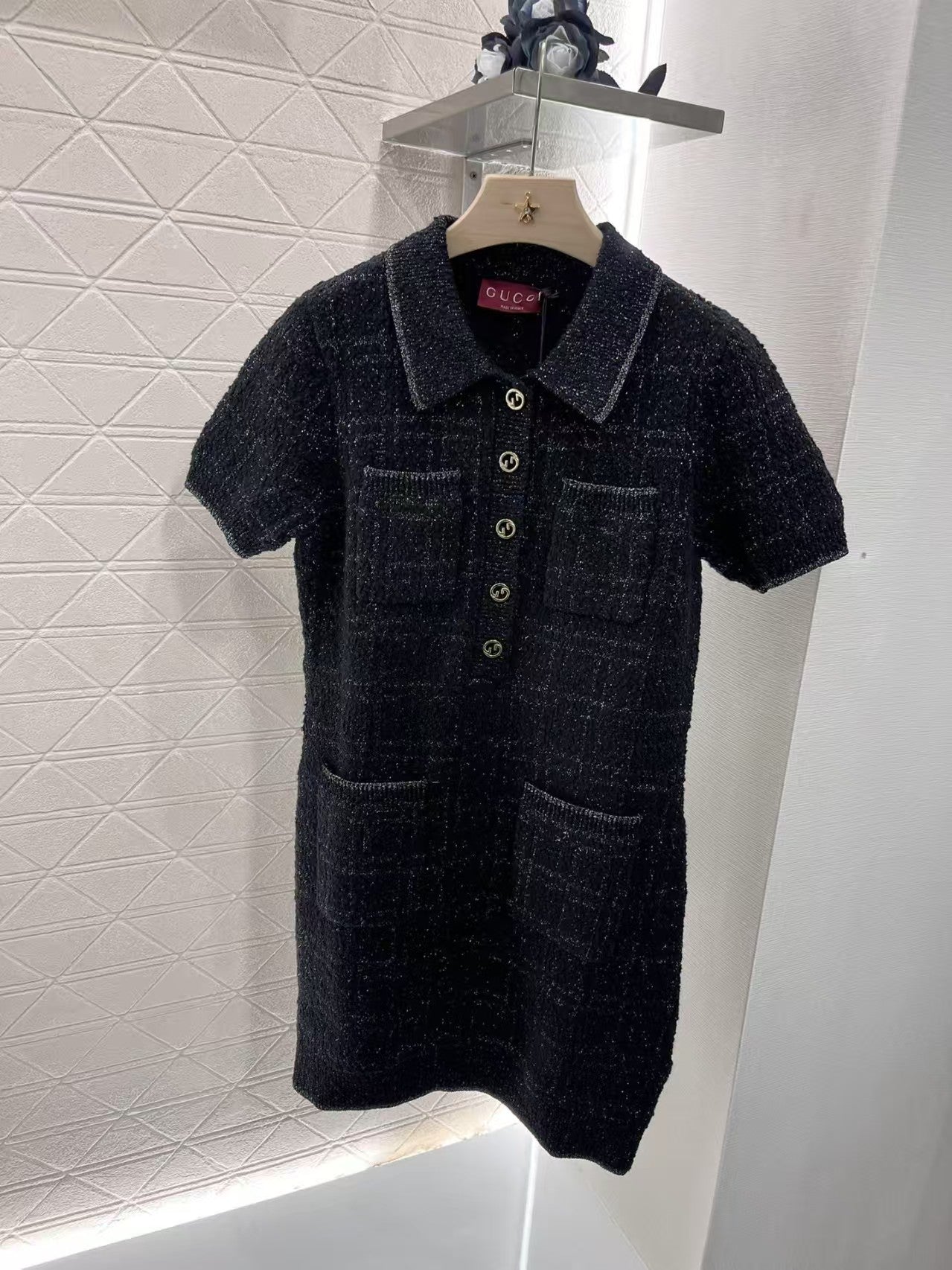 Temperament heavy buttoned slim fit knitted dress