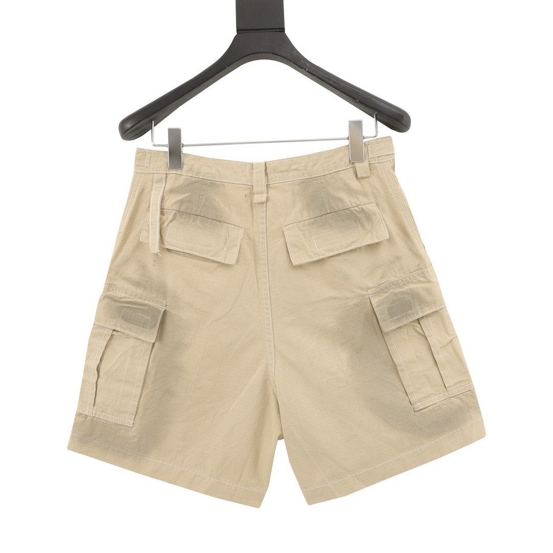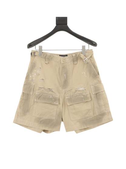 Hand Painted Dirty Plaid Fabric Workwear Denim Shorts