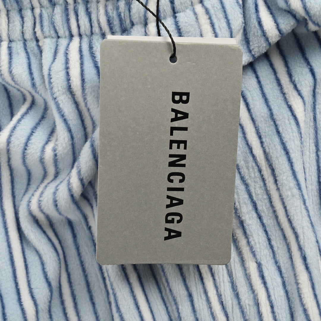 blue striped plush trousers