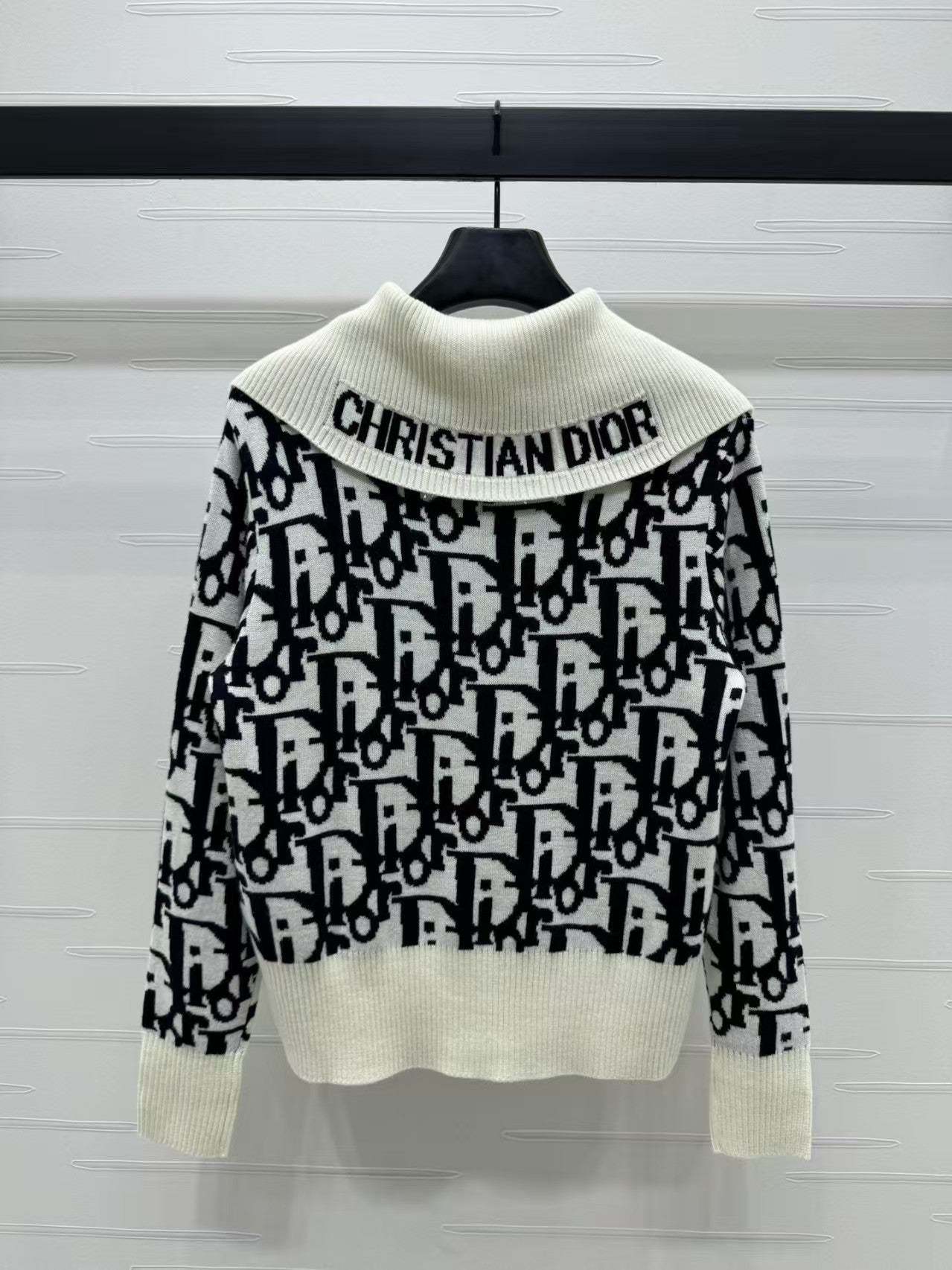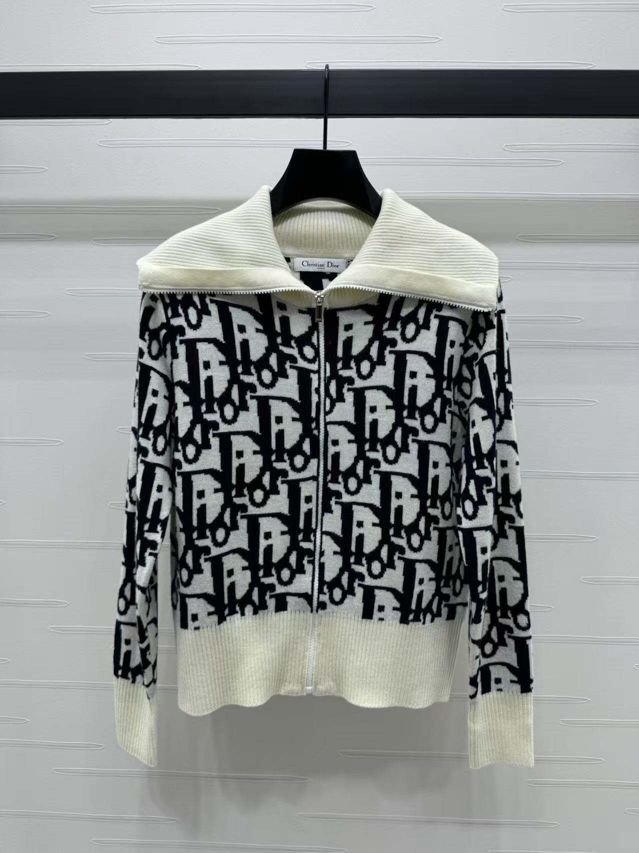 Contrast color stand collar knitted jacket