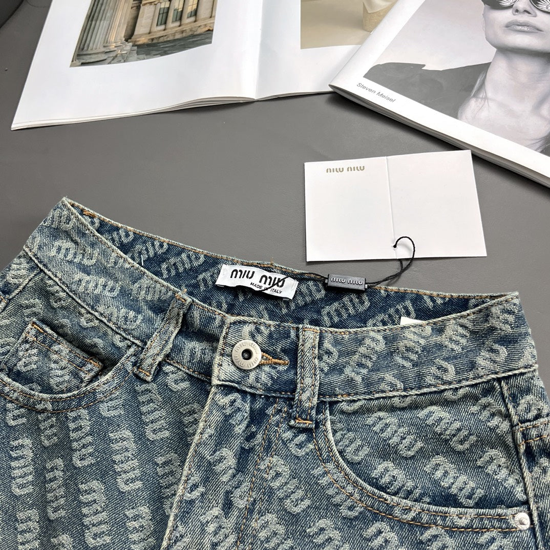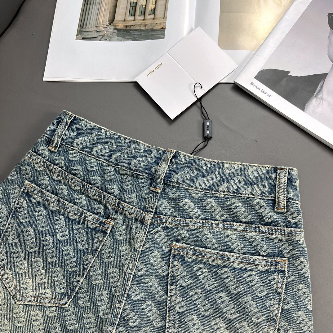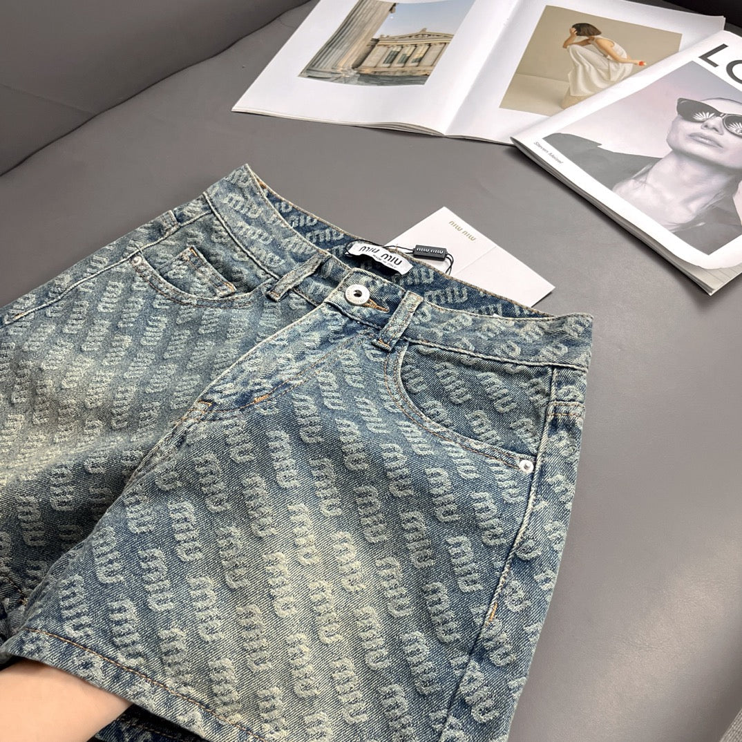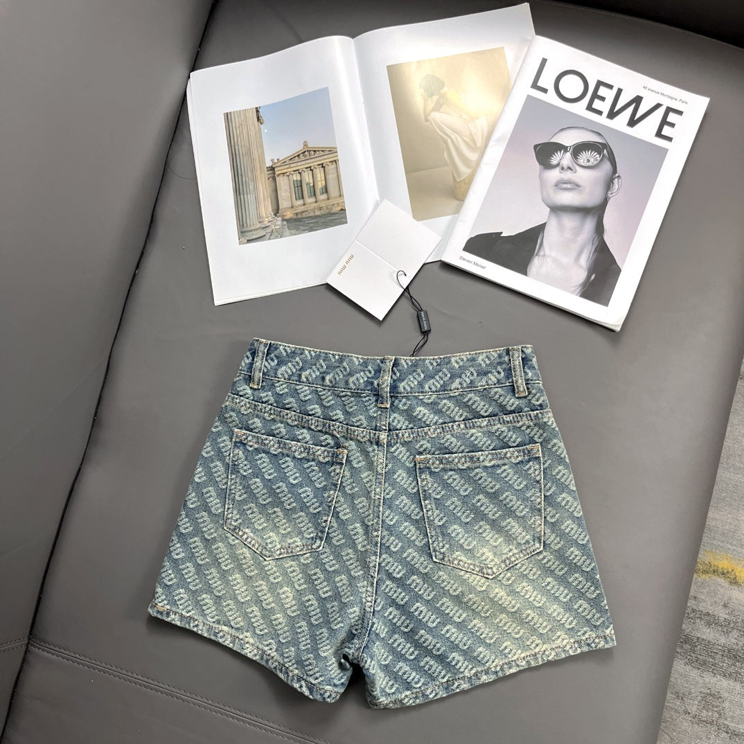 Jacquard logo denim shorts