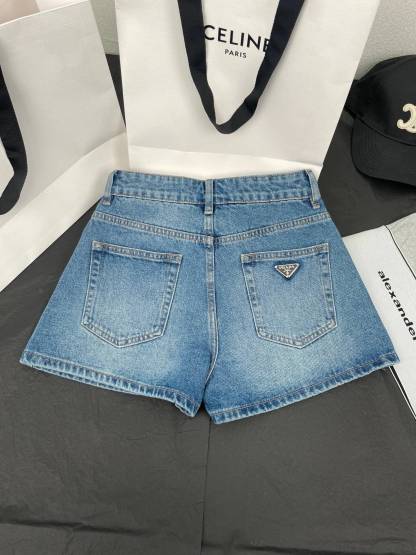 New spring and summer women's logo contrast high waist denim washed denim shorts,