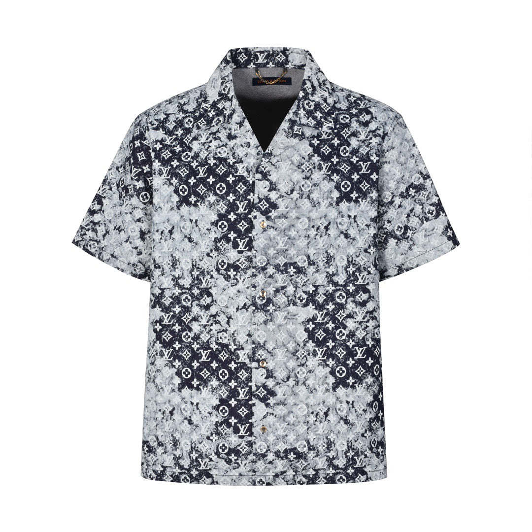 This short-sleeved shirt is made of Japanese denim with clean lines, buttoned front and straight lines for rich details. The full-length scarf print presents a bleached tie-dye effect, which is achieved through the discharge technology. This denim short-sleeved shirt also covers the full-length scarf print with a tie-dye effect, and the fading treatment after the discharge technology makes it more unique. The 100% cotton loose version is more textured, low-key luxury fashion, casual matching, and the fine cotton material is soft and delicate.