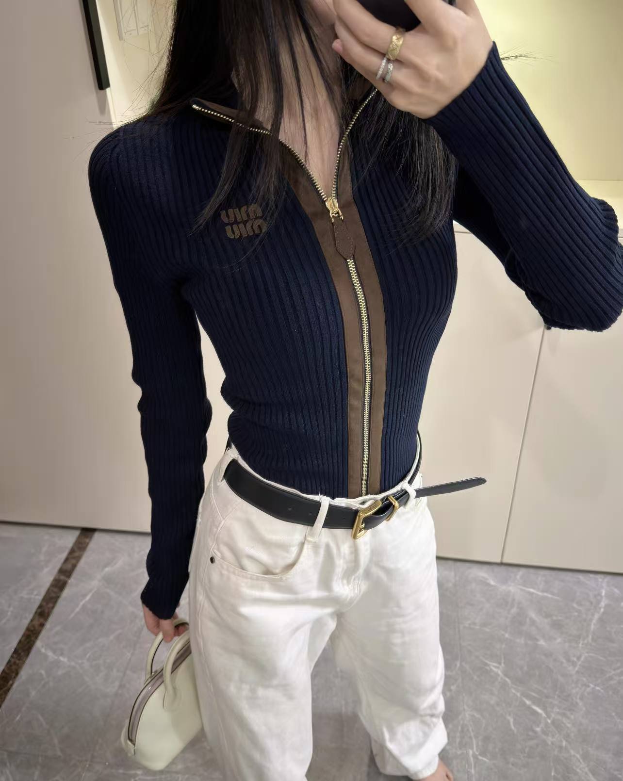 MM 26SS Frosted edging, half-zipper, small stand collar, knitted