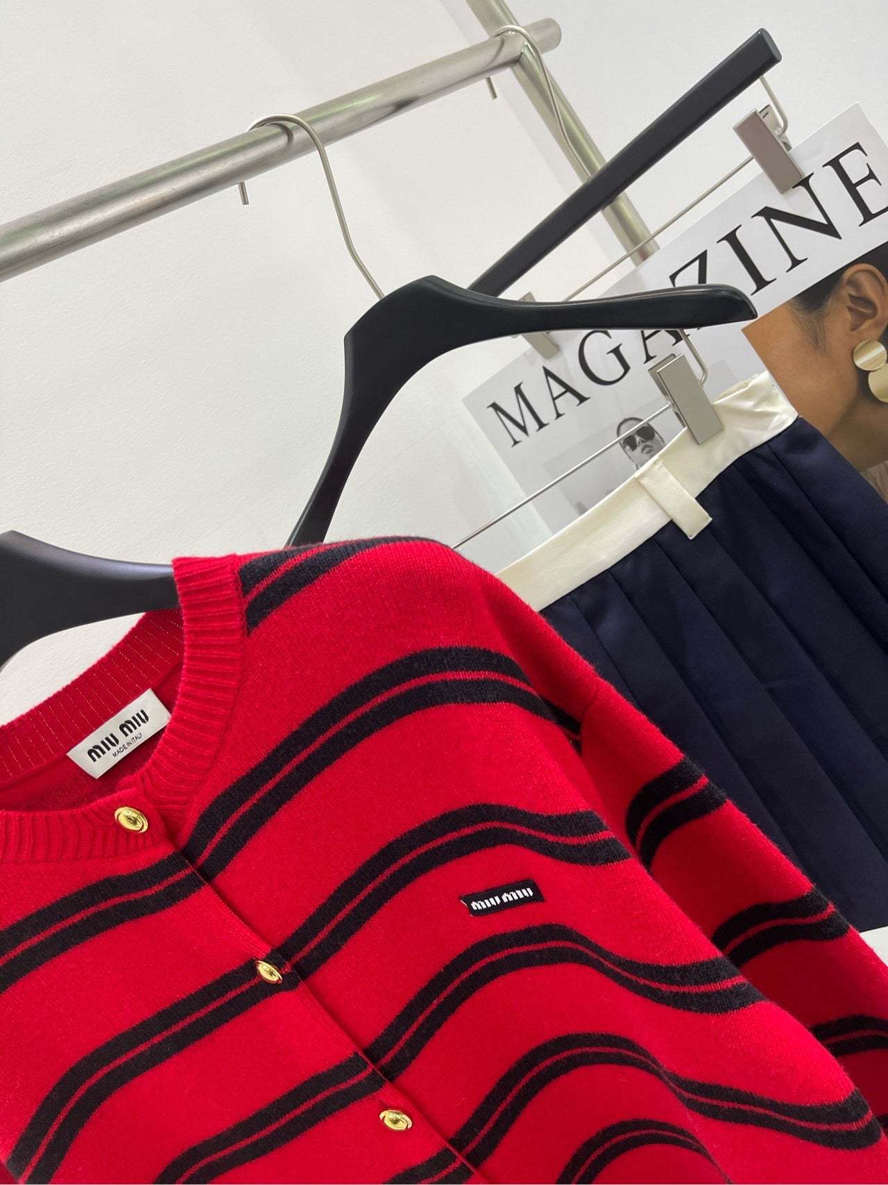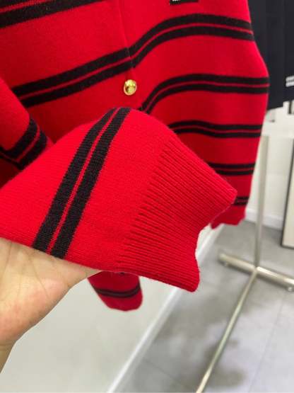 Red and black wide stripes with gold buttons