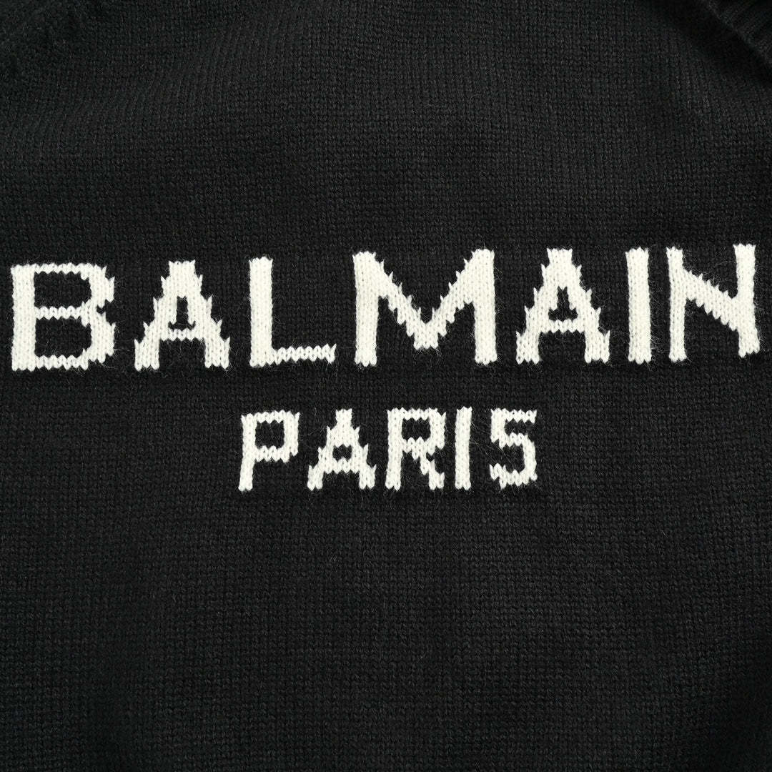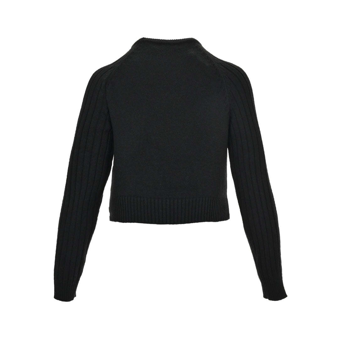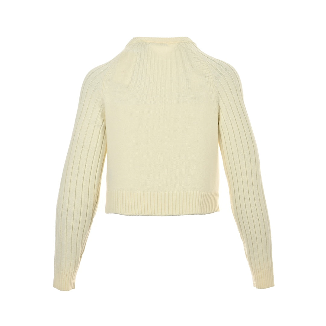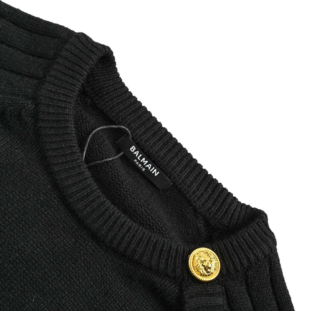 Women's letter logo metal button crew neck sweater